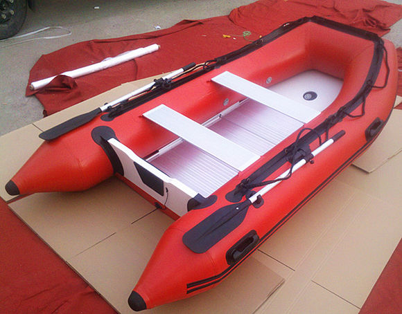 (4)配可拆式塑鋼底板與鋁合金底板,掛機艇艇殼氣囊采用膠粘與高周波熱合工藝加工制作,氣密好、強度高、經(jīng)久耐用、質量一流。充氣后可保持至少一周。